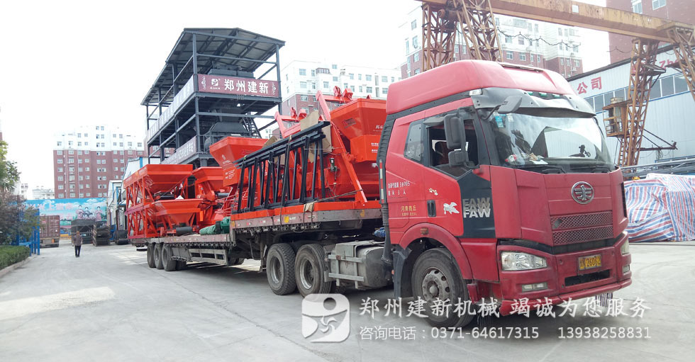 2017年9月24日,一臺(tái)臺(tái)攪拌機(jī)與配料機(jī)在運(yùn)貨司機(jī)以及建新發(fā)貨人員、裝貨人員的共同努力下,如期的將建新生產(chǎn)的750混凝土攪拌機(jī)與800配料機(jī)設(shè)備批量發(fā)送至發(fā)送河南商丘,敘述此次發(fā)貨已經(jīng)是近三月內(nèi)建新為商丘客戶提供的第四批攪拌站設(shè)備。