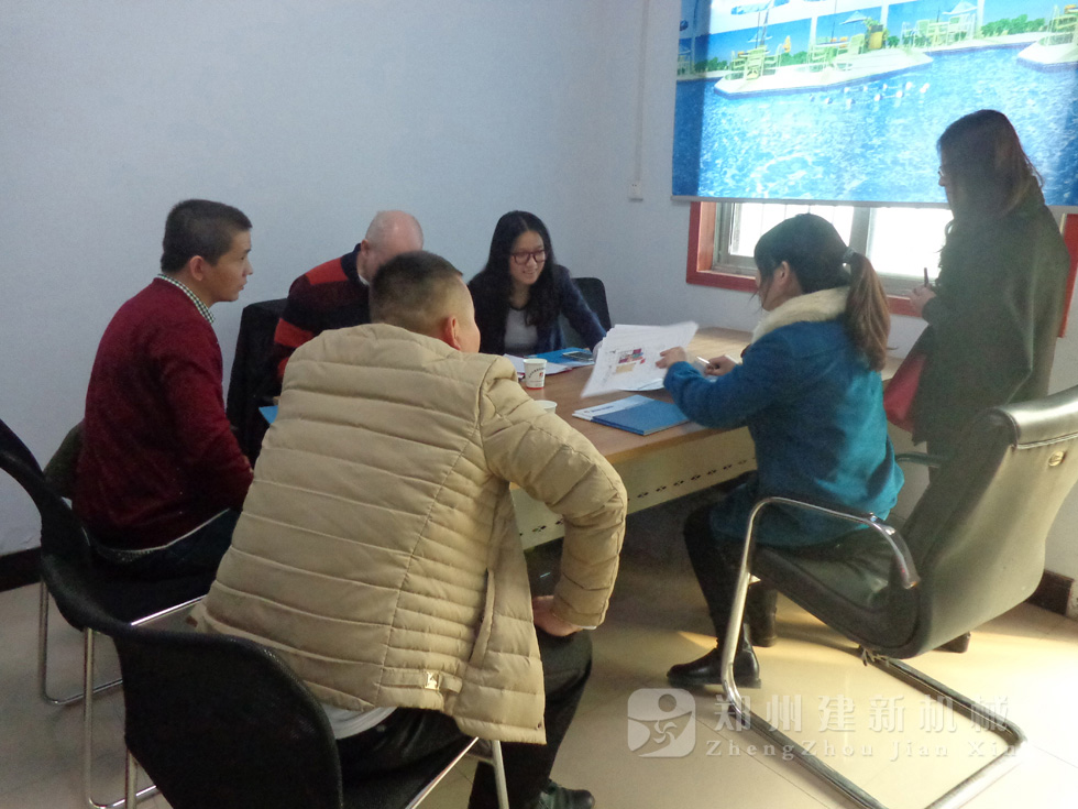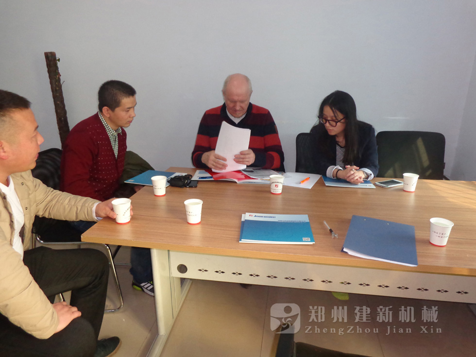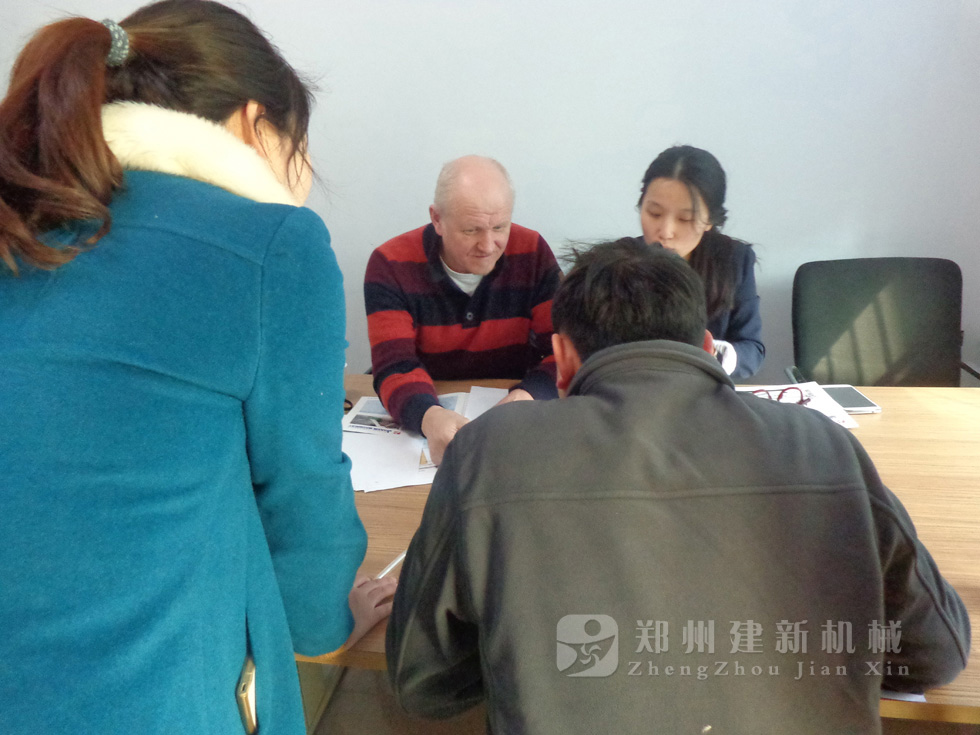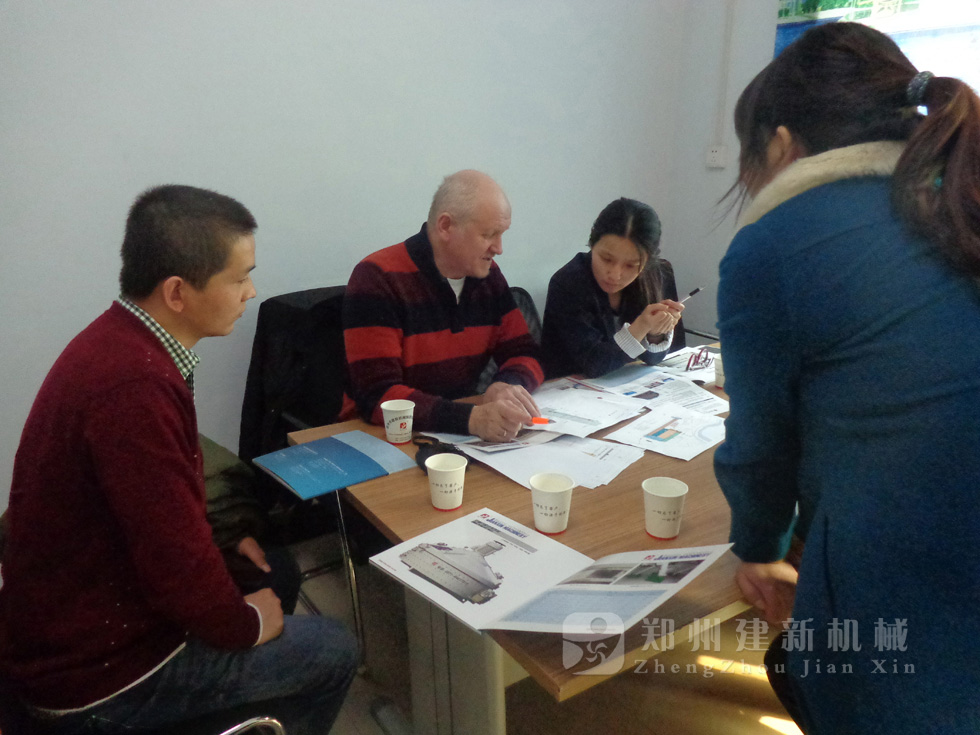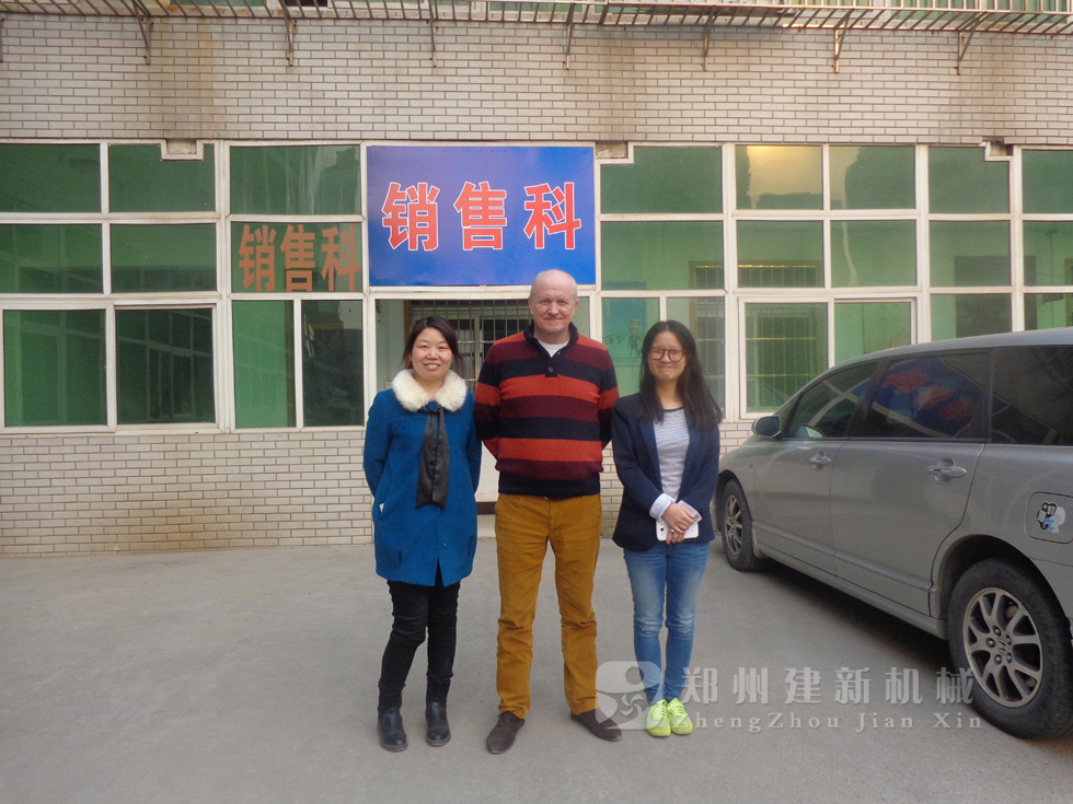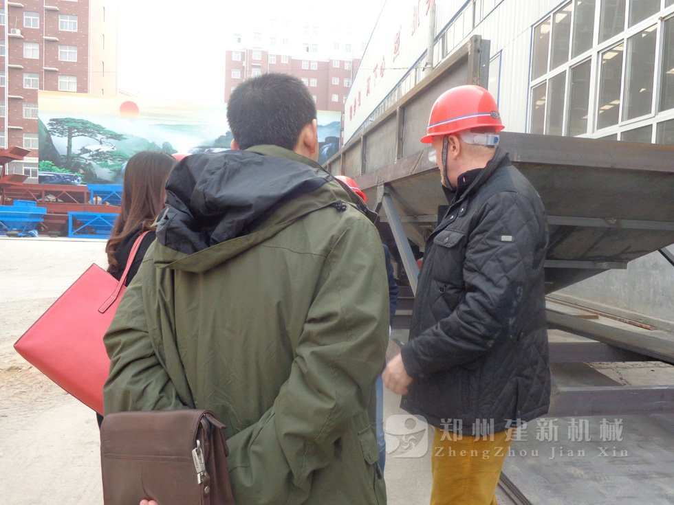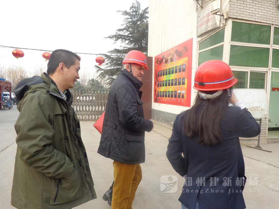 2014年11月,來(lái)自俄羅斯的客戶(hù)來(lái)到鄭州建新公司簽訂了兩套時(shí)產(chǎn)120方混凝土攪拌站設(shè)備的大訂單,下圖為建新公司銷(xiāo)售部劉經(jīng)理、經(jīng)理帶客戶(hù)參觀建新公司的生產(chǎn)車(chē)間及成品貨場(chǎng)。