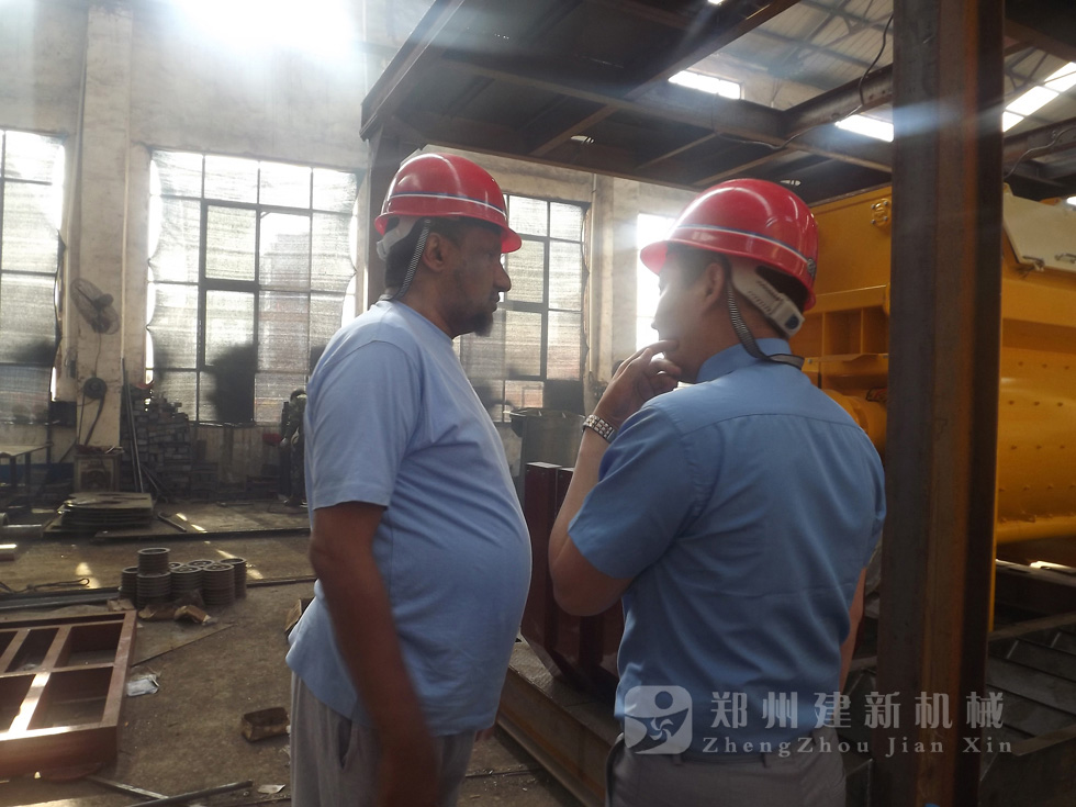 近年來,鄭州建新機械制造有限公司的混凝土攪拌站設備不僅在國內暢銷,產品遍布祖國各個省市地區,更遠銷馬來西亞、俄羅斯、印尼、菲律賓、加拿大、越南等幾十個,以下是來自沙特阿拉伯的客戶特地前來鄭州建新考察,并簽訂一套HZS90型混凝土攪拌站設備。