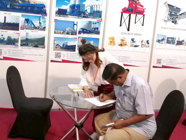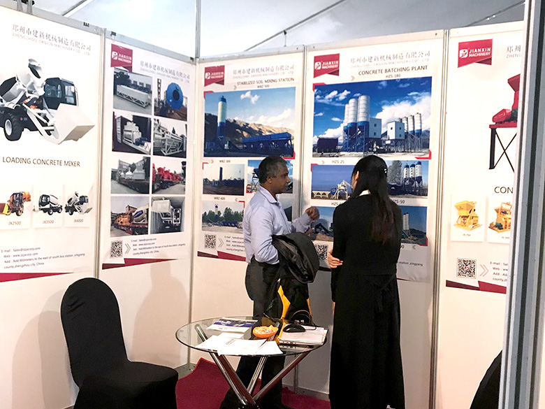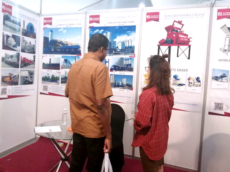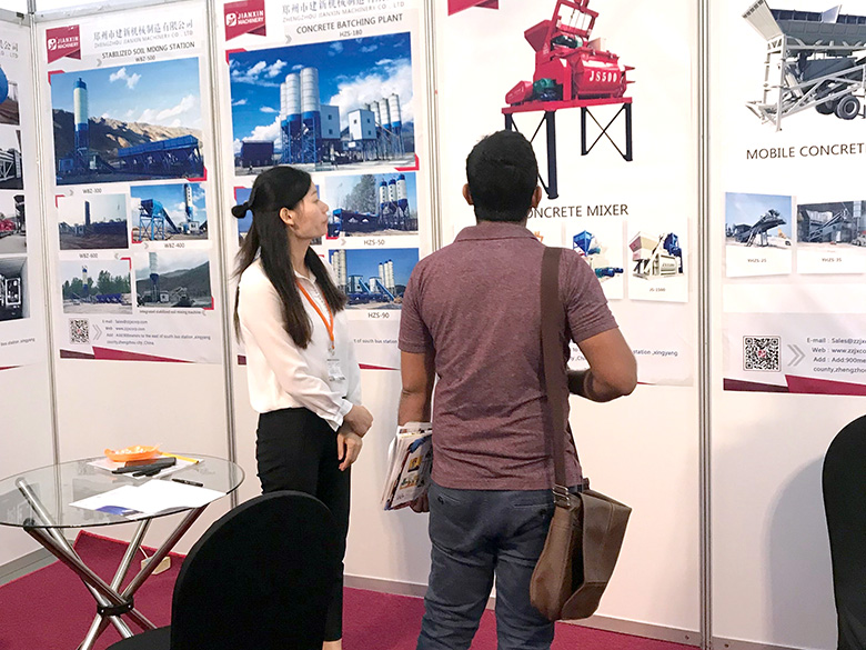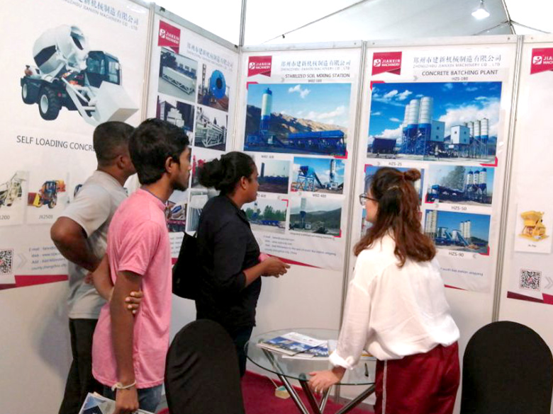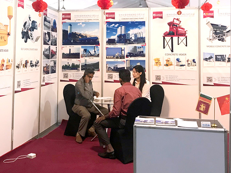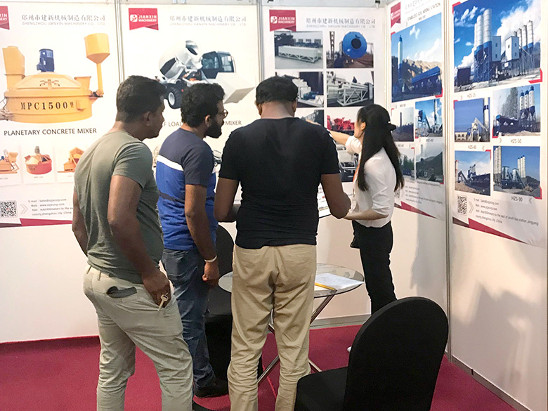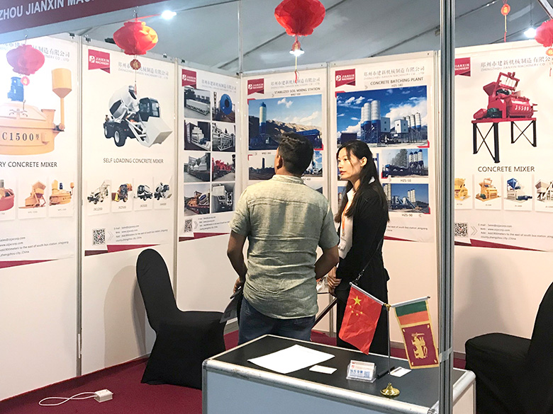 展會上,建新機械研發的JS混凝土攪拌機、YHZS移動式攪拌站、MPC立軸行星式攪拌機、HZS系列混凝土攪拌站、WBC系列穩定土拌合站等產品吸引了絡繹不絕的觀展者駐足洽談。接待人員不失時機地向來觀展的客戶介紹建新機械的技術優勢、產品特點、售后服務及銷售代理政策,其熱情的講解受到了廣大斯里蘭卡客戶和當地工程機械人士的關注,部分客戶當場展開了詳細的商談。